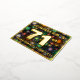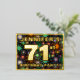 The front of this eye-catching and joyful seventy-first birthday party/celebration foil invitation postcard design features a custom name, a large number “71st”, the message “BIRTHDAY PARTY!”, and a border. The background of the front has a bold, multicolored pattern inspired by bursting celebratory fireworks. The back features personalised details about the event, such as the date, time, location, and any other information that may be relevant. Editable invitations like these might be a fun way to let attendees/guests know about a birthday gathering/party being held to honour somebody’s 71st birthday. [~Z0000609]
