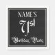 This elegant and fancy birthday-themed paper napkin design features an editable name and the message “71st Birthday Party”. The large number “71st” and the words “Birthday Party” are in opulent script-style text. The background is coloured black by default (although it can be customised). Elaborate, elegant paper napkins like this might be useful to have at a birthday party being held to honour somebody’s seventy first birthday. [~Z0000563]