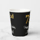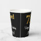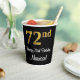 This sophisticated, stylish, and luxurious birthday paper cup design features a large ordinal number “72nd” having an imitation/faux gold-like look, plus the birthday greeting message “Happy 72nd Birthday,” and an editable name in a script-style font. The background is coloured black. Sophisticated birthday themed paper cups like this might be used at a birthday party celebrating somebody’s 72nd birthday. [~Z0000538]