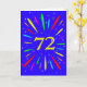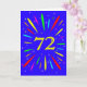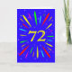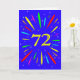 An explosive 72nd birthday card! What a wonderful way to send birthday greetings. The number 72 in bright yellow with an explosion of bright colours and stars.