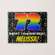 This exciting and fun birthday themed jigsaw puzzle design features a large number “72” having a multicolored rainbow spectrum inspired gradient pattern. It also features the message “HAPPY 72nd BIRTHDAY,”, and a personalised recipient name. The background has an eye-catching, multicolored pattern featuring star shapes of various sizes. An upbeat, editable birthday puzzle like this might be a fun way to deliver birthday greetings to somebody who is celebrating their seventy-second birthday. [~Z0000607]