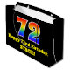 This colourful and vibrant birthday-themed gift-bag design features a large number "72" with a rainbow spectrum gradient inspired pattern, along with the message "Happy 72nd Birthday,", and an editable name. It also has a black-coloured background. A fun birthday themed gift bag like this might be a fun way to wrap a gift or present being given to celebrate somebody’s seventy second birthday. [~Z0000521]