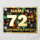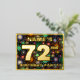 The front of this vibrant seventy-second birthday celebration foil invitation postcard design features an editable name, a large number “72nd”, the message “BIRTHDAY PARTY!”, and a border. The background of the front has an eye-catching, colourful bursting celebratory fireworks-inspired pattern. The back features personalised details about the event, such as the date, time, place/venue, and any other information that may be useful. Customisable invitations like these might be a fun way to invite guests to a birthday gathering being held to honour somebody’s 72nd birthday. [~Z0000609]