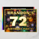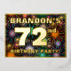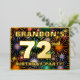 The front of this fun and bold seventy-second birthday celebration/party foil invitation card design features a customisable name, a large number “72nd”, the message “BIRTHDAY PARTY!”, and a border. The background of the front has an upbeat, colourful pattern that resembles bursting celebratory fireworks. The back features personalised details about the event, such as the date, time, venue/place, and any other relevant information. Customised invitations like these might be a fun way to invite guests/attendees to a birthday gathering/party being held in celebration of somebody’s 72nd birthday. [~Z0000602]