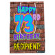 The front of this fun birthday-themed gift bag design features the message “HAPPY 73RD BIRTHDAY,” having a vibrant, colourful, graffiti-inspired appearance, in addition to a customisable recipient name. The background features a brick wall inspired pattern. A birthday themed gift-bag like this might be a fun way to wrap a gift or present being given to somebody who is celebrating their seventy third birthday. [~Z0000536]