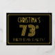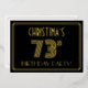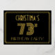 The front of this 1920s-1930s style inspired and vintage-style seventy-third birthday celebration foil invitation features a customisable name, a large art deco style inspired number “73RD”, the message “BIRTHDAY PARTY!”, and a border pattern consisting of lines. The front also features a black-coloured background by default, but it can be customised to a different colour if desired. The back features personalised details about the event, such as the date, time, location, and any other relevant information. Elegant, luxurious, customised invitations like these might be used to invite guests to a birthday party/celebration being held to celebrate somebody’s 73rd birthday. [~Z0000590]