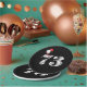 Red, white and black party balloon bouquet on black background for 73rd birthday.
