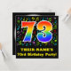 The front of this fun, colourful, and vibrant birthday party invitation design features a large number "73" having a rainbow spectrum gradient inspired pattern. It also features a customisable name and the message "73rd Birthday Party!". Part of the background features a fun and colourful music notes and symbols pattern. The back features customisable information pertaining to the event that the potential guests are being invited to. Joyful, customised birthday celebration invitation cards like this might be used when inviting guests to attend a party being held to honour a singer’s, a musician’s, a song composer’s, or somebody else’s 73rd birthday. [~Z0000427]