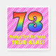 This happy and festive 73rd birthday-themed paper napkin design features a large number "73" having a colourful pattern inspired by the appearance of a rainbow spectrum. It also features the message "Happy 73rd Birthday,", and a personalised name. The background features a pattern of dark pink and light pink stripes containing loving pink heart shapes. Birthday themed paper napkins like this might be used when celebrating somebody’s seventy third birthday. [~Z0000417]