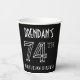 This stylish 1920s-1930s era inspired art deco look birthday themed paper cup design has a personalised name, along with the message “74TH BIRTHDAY PARTY!”. The number “74TH” has a fancy geometric lined appearance. Birthday themed paper cups like this might be a fun way to celebrate somebody’s seventy-fourth birthday, or some other 74th event. [~Z0000658]