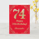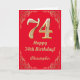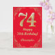 74th Birthday Red and Gold Glitter Frame. For further customisation, please click the "Customise it" button and use our design tool to modify this template.