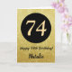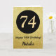 74th Happy Birthday Black and Gold Glitter Card with personalised name. For further customisation, please click the "Customise it" button and use our design tool to modify this template.