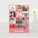 74th Happy Birthday Photo Collage Modern Pink Card with personalised name. For further customisation, please click the "Customise it" button and use our design tool to modify this template.