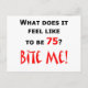 What does it feel like to be 75? Bite Me! Humourous design for the 75 year old who's not happy about turning 75 and a warning sign for others. Makes a great 75th birthday gift.