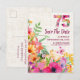 75 Years Flowers Floral Linen 75th Birthday Announcement Postcard
