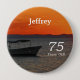 This pin is made with an original photograph of a fishing boat at sunset. This unique pin is a great gift for someone who is 75 Years Old. They can wear it proudly at their 75th birthday party! It can be personalised, both name and number of years. Original photograph by Marcia Socolik. All Rights Reserved © 2014 Marcia Socolik.