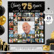 75th Birthday 45 Photo Collage Cheers to 75 Years Poster Print. Create a 75th birthday photo memory poster print utilising this easy-to-upload photo collage template with 45 pictures of him or her through the years for a fun birthday party decoration and commemorative keepsake. The design features the title CHEERS TO 75 YEARS with gold foil balloon numbers and confetti and your custom text (the sample says HAPPY BIRTHDAY NAME) in your choice of background colour (shown in black). OPTIONS: The sample is shown in a 26X30" size on Value Paper (Matte); other standard and custom print sizes, paper quality and framing, Instant Digital Download file for printing locally or transferring the design to a foam board, banner, canvas or other product options are available on the ordering page. RESIZING TIP: Choose Custom Size for even borders by changing the height and width proportionately AFTER clicking the UNLOCK icon (looks like a chain link). ASSISTANCE: For help with design modification or personalisation, colour change, resizing or transferring the design, contact the designer BEFORE ORDERING via the Zazzle Chat MESSAGE tab or email makeitaboutyoustore@gmail.com.