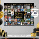 75th Birthday 48 Photos 75 Years in the Making Poster Print Sign. Celebrate a 75th birthday for him or her with photo memories through the years with this photo display printed on a poster print utilising this easy-to-upload photo collage template with 48 square pictures featuring a retro calligraphy script typography title 75 YEARS IN THE MAKING and your custom text in your choice of text and background colours to coordinate with your party theme colours (shown in gold on black--the title graphic remains gold). The sample shows HAPPY BIRTHDAY NAME. OPTIONS: The sample is shown in a 36x27" size on Value Paper (Matte); other standard and custom print sizes, paper quality and framing, Instant Digital Download file for printing locally or transferring the design to a foam board, banner, canvas or other product options are available on the ordering page. RESIZING TIP: Choose Custom Size for even borders by changing the height and width proportionately AFTER clicking the UNLOCK icon (looks like a chain link). ASSISTANCE: For help with design modification or personalisation, colour change, resizing or transferring the design, contact the designer BEFORE ORDERING via the Zazzle Chat MESSAGE tab or email makeitaboutyoustore@gmail.com.