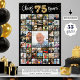 75th Birthday 55 Photo Collage Cheers to 75 Years Poster Print. Create a 75th birthday photo memory display poster print utilising this easy-to-upload photo collage template with 55 pictures of him or her through the years for a fun birthday party decoration and commemorative keepsake. The design features the title CHEERS TO 75 YEARS with gold foil balloon numbers and your custom text (the sample says HAPPY BIRTHDAY NAME) over the centre photo in your choice of text of font styles and colours as well as background colour (shown in black). OPTIONS: The sample is shown in a 20X30" size on Value Paper (Matte); other standard and custom print sizes, paper quality and framing, Instant Digital Download file for printing locally or transferring the design to a foam board, banner, canvas or other product options are available on the ordering page. RESIZING TIP: Choose Custom Size for even borders by changing the height and width proportionately AFTER clicking the UNLOCK icon (looks like a chain link). ASSISTANCE: For help with design modification or personalisation, colour change, resizing or transferring the design, contact the designer BEFORE ORDERING via the Zazzle Chat MESSAGE tab or email makeitaboutyoustore@gmail.com.