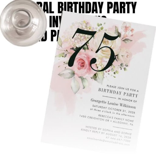 75th Birthday Pink Rose Floral Invitation and GiftDesigned by S A Holmes
