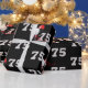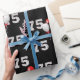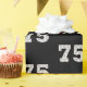 75th birthday party with bold black and white happy and number 75 text on black with party balloon bouquet.
