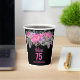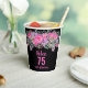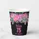 75th birthday black pink floral Paper Cups. Personalise name and age.