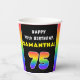 75th Birthday: Colourful Rainbow # 75, Custom Name Paper Cups