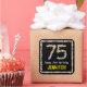This floral, garden-inspired birthday themed square sticker design features the message “Happy 75th Birthday,” and a custom recipient name. The large number “75” and the border both feature flower icons. Fun birthday themed stickers like these might be distributed or used at a party in celebration of somebody’s seventy-fifth birthday, or perhaps used when preparing gifts/presents or invitations for such an event. [~Z0000652]