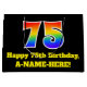 This colourful and vibrant birthday gift-bag design features a large number "75" with a rainbow spectrum gradient inspired pattern, along with the message "Happy 75th Birthday,", and an editable name. It also has a black-coloured background. A fun gift bag like this might be a fun way of wrapping a birthday present or gift being given to somebody who is celebrating their 75th birthday. [~Z0000521]