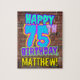 This fun birthday-themed puzzle design features the message “HAPPY 75TH BIRTHDAY,” having a colourful, vibrant, urban street art and graffiti inspired appearance, along with an editable recipient name. The background features a pattern inspired by the look of a brick wall. A fun, customised birthday puzzle like this might be given in celebration of somebody’s seventy-fifth birthday. [~Z0000532]