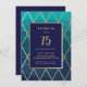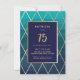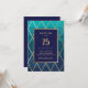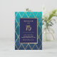 This elegant and trendy 75th birthday celebration invitation can be customised for your special occasion. It features a gold (simulated foil) frame and gold geometric lines in the background as well as a blue ombre watercolor style wash. Within the gold frame is a navy blue background box. "75" is in a stylish script font. A perfect invite for a milestone birthday.