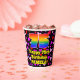 This colourful and cheerful birthday paper cup design features a large number “75” with a rainbow spectrum gradient inspired pattern, along with the message “Happy 75th Birthday,”, and an editable name. The background features a pattern of red, purple, and pink heart shapes of various sizes. Happy, upbeat paper cups like this might be fun to use at a birthday celebration being held to celebrate somebody’s seventy fifth birthday. [~Z0000548]