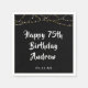 These personalised party napkins help you celebrate a 75th (or any age) birthday in style. An editable black background with gold and white string lights design has a changeable handwritten brush script font for the HAPPY #TH BIRTHDAY NAME title and date or other text in an editable white colour.