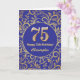 75th Birthday Navy Blue and Gold Floral Pattern Card