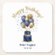 75th Birthday Navy Blue Balloon Cake Square Paper Coaster