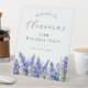 Elegant summer watercolor blue larkspur flowers create a beautiful floral border at the bottom of this birthday party welcome sign, larkspur or delphinium flowers are the July birth flower. A trendy font combination gives it a modern aesthetic. All of the text is editable.