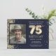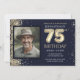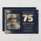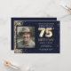 75th Birthday Party Gold Glitter Blue Photo Invitation