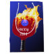 Red pickleball paddle with blue ball in flames on blue background for 75th birthday.