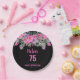 75th birthday "75 and fabulous" pink black watercolor floral Paper Plates. Personalise with name, age and text.