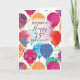 This festive 75th birthday card features colourful balloons in shades of pink gold, purple and turquoise on a white background. Personalise with a name for a unique birthday card. The inside may also be customised with your own greeting or use as is with your name for signature. Designed by world renowned artist ©Tim Coffey.