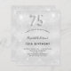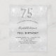 A modern, stylish and glamourous invitation for a 75th birthday party. A faux silver looking background, decorated with glitter dust. Personalise and add your name nad party details. Number 75 is written with a balloon style font, script.