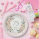 These beautiful 75th birthday 9" paper plates are chic and trendy and features watercolor blush orchids, cream roses, and anthurium with eucalyptus on blush pink. They are elegant and modern and the greenish grey font matches the eucalyptus. To make these gorgeous plates your own select Personalise this template and type in the guest of honour's name, age and the date. In seconds you can see your stunning 75th birthday party plates. They'll look beautiful on your counters, buffet, and tables.