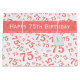 This design is a coral and white random number pattern with milestone number 75 repeated in varied sizes and angles in an all-over print. There is a printed band and gift tag with text templates to change to your own words, name, initial, or monogram. A great idea for a personalised gift wrap for a special occasion. It is suitable for all occasions including: birthdays, anniversaries, retirement, or for any occasion or event where you are celebrating the number seventy five, just by changing the text.
