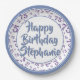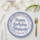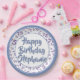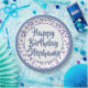 This over-the-hill design has a blue and white random number pattern with a blue milestone number 75 repeated in varied sizes and angles. There is a white circle in the centre for your text and blue-and-white rings around the rim.