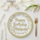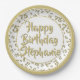 This design features a gold and white random number pattern with a gold milestone number 75 repeated in varied sizes and angles. A white circle with black-and-white rings surrounds the text.