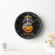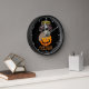 The size of the clock is dramatic and the abstract alcohol ink design is soothing and intricate at the same time. I chose the black frame that adds pop to the blue and gold design. The gold printing would be better in a slightly darker or larger font. I love it and I’m looking for just the right place in ny new apartment. I would recommend this clock for a personal gift or a present. I feel that the quality is excellent for the money! I’m a bit of a clock nut so I’m pretty particular about my purchases. The clock is larger in diameter than many if the clocks I have, so it stands out very well. I think a slightly darker printing color and a moderately larger size would best suit a professional decor or add more impact in a work place item.