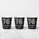 This vintage appearance and Roaring Twenties inspired birthday paper cup design features a large art deco inspired appearance number “76”, along with the birthday greeting message “Happy 76th Birthday,” and a personalised name. It also has a black-coloured background. Paper cups like this might be used at a party for somebody who is celebrating their seventy sixth birthday. [~Z0000542]