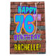 The front of this fun birthday gift bag design features the message “HAPPY 76TH BIRTHDAY,” having a vibrant, colourful, urban street art and graffiti inspired look, along with a custom recipient name. The background features a pattern inspired by the look of a brick wall. A vibrant gift bag like this might be used when wrapping presents being given to somebody in celebration of their 76th birthday. [~Z0000536]