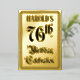 The front of this luxurious and ornate seventy-sixth birthday party foil announcement card design features the message “76th Birthday Celebration” in elegant script-style text. It also features an editable name. The back features personalised details about the event, such as the date, time, location/venue, and any other relevant information. Opulent, fancy, editable invitations like these might be used to invite guests to a birthday party/celebration being held to celebrate somebody’s seventy-sixth birthday. [~Z0000596]
