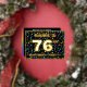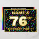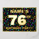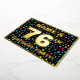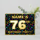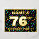 The front of this exciting and fun seventy-sixth birthday celebration/party foil invitation card design features a personalised name, a large number “76th”, the message “BIRTHDAY PARTY!”, and a border. The background of the front has a joyful, colourful pattern of stars. The back features personalised details about the event, such as the date, time, place/venue, and any other information that may be important. Customisable invitations like these might be a fun way to invite attendees to a birthday party being held to celebrate somebody’s 76th birthday. [~Z0000600]